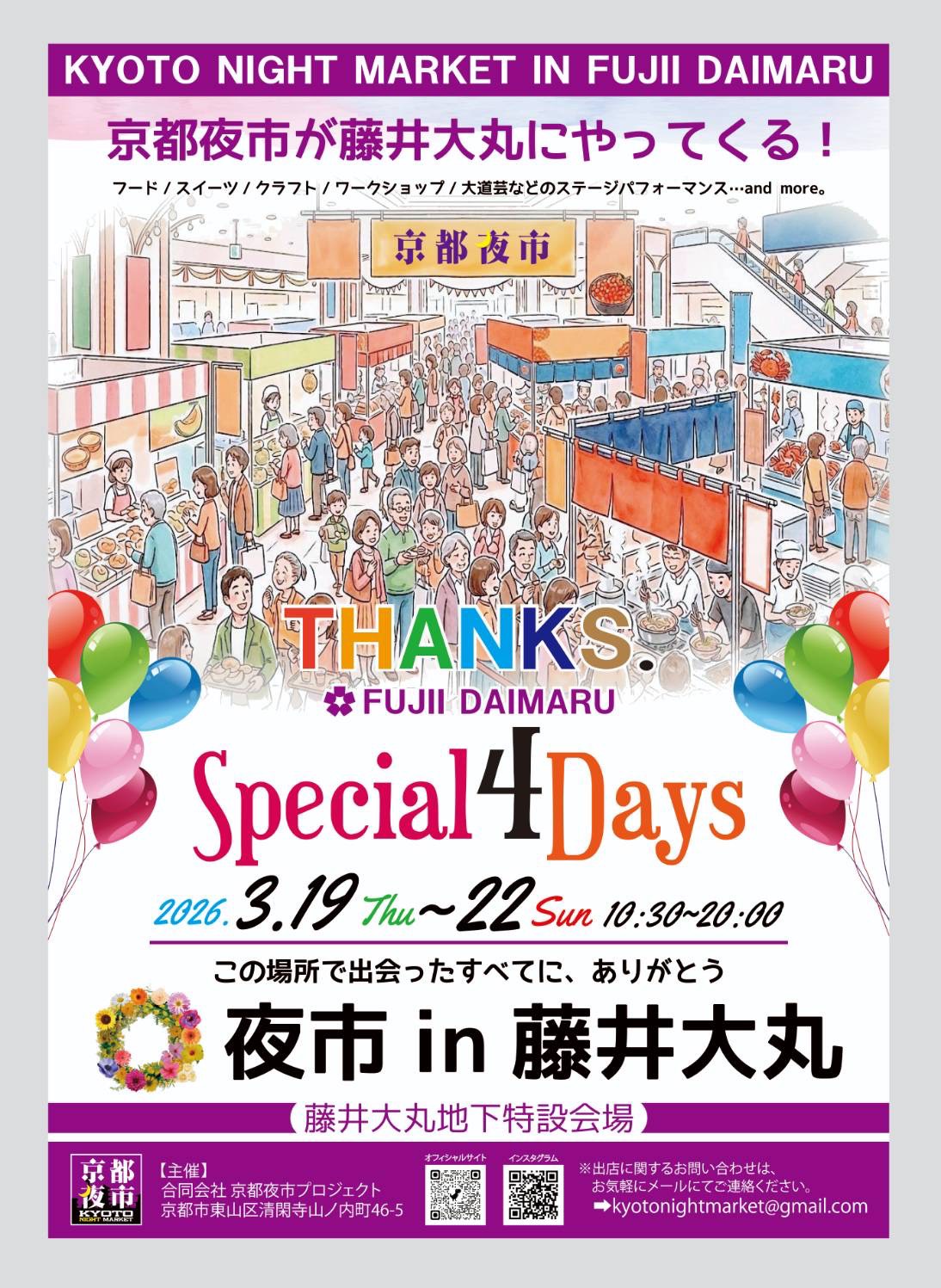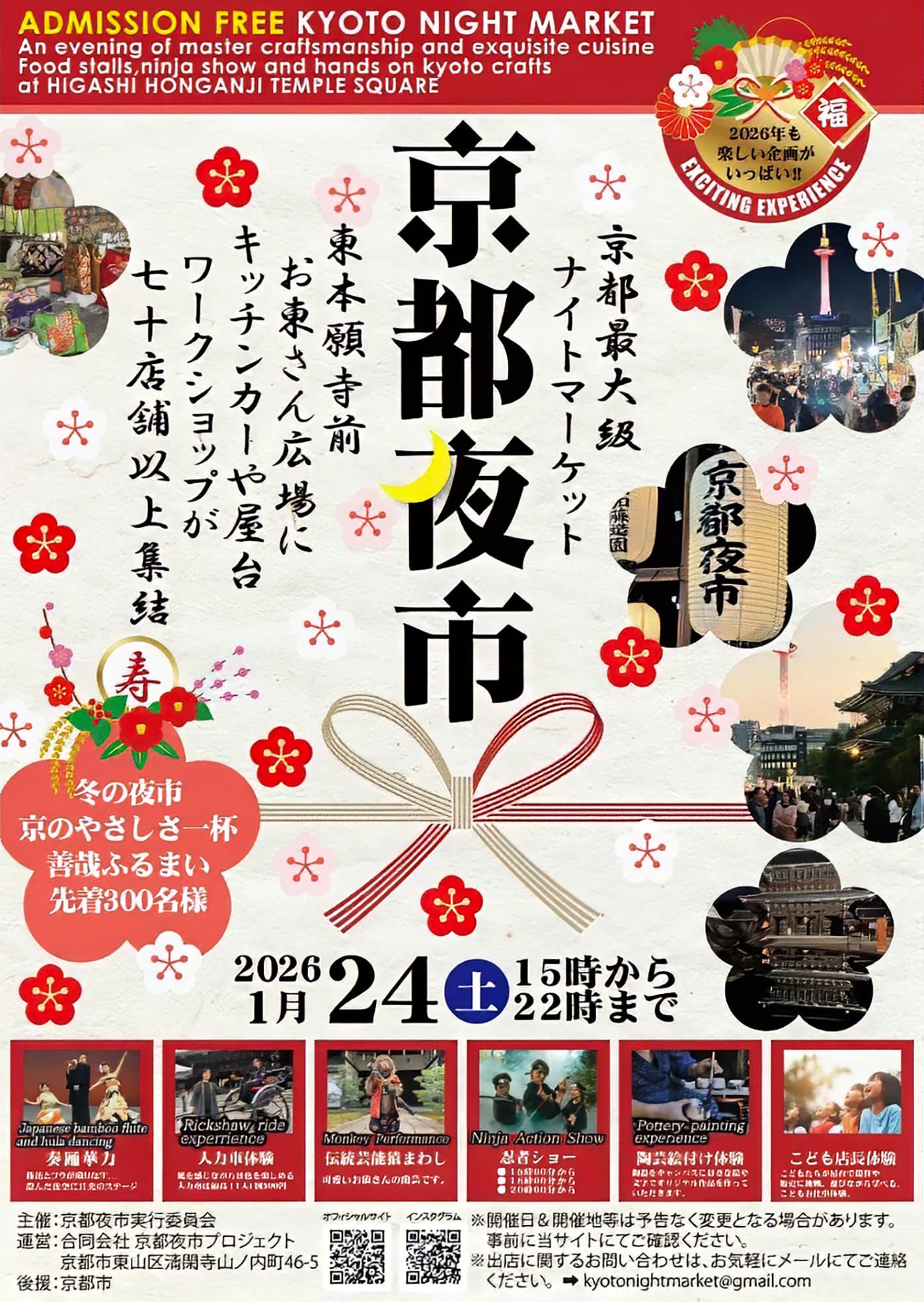 文化と伝統、グルメで最高の京都を体験。京都の夜をもっと楽しく!もっと面白く!Kyoto Night Market. Enjoy the culture and cuisine of Kyoto!